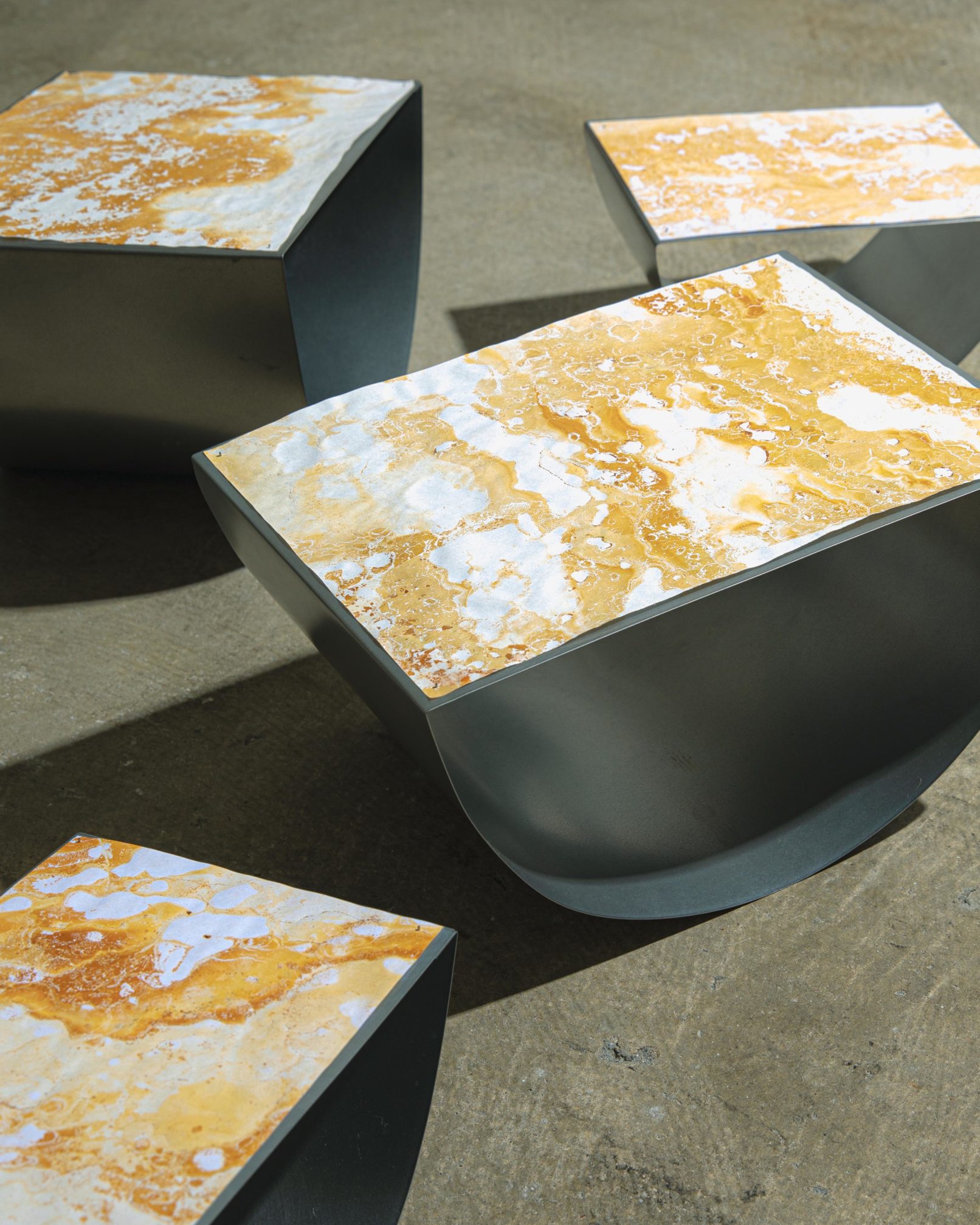 鉄酸化バクテリアの酸化鉄を素材として扱うことを発端に、自然界での鉄の酸化還元の循環を知り、鉄が必須因子である私たちの生命活動や、地球を取り囲む強大な磁場、相互に関係しあっている複雑さに思いを馳せることになった。