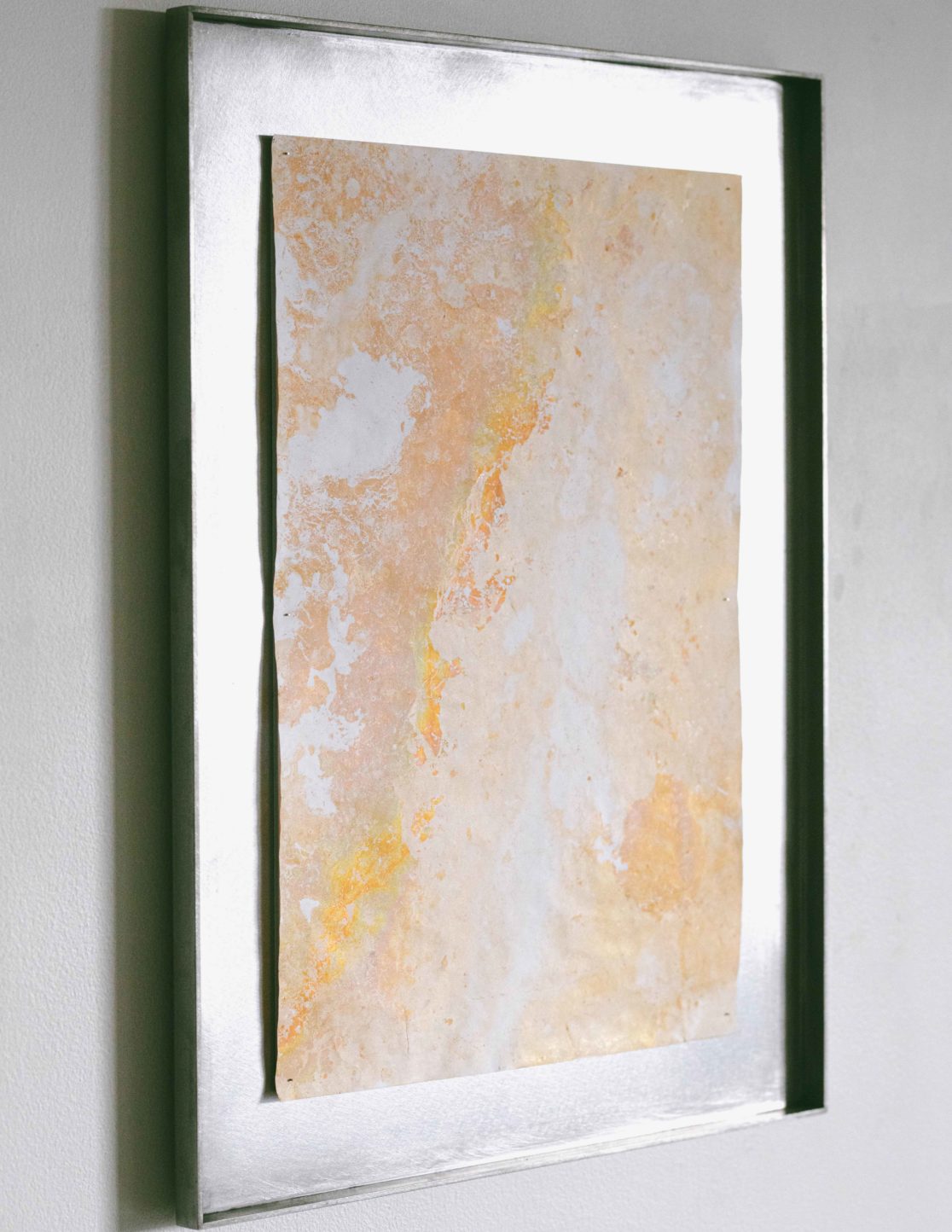 water flows slowly in many places produced a large number of iron-oxidizing bacteria. The film produced by the iron-oxidizing bacteria has a complex metallic sheen, and I decided to capture it on paper.